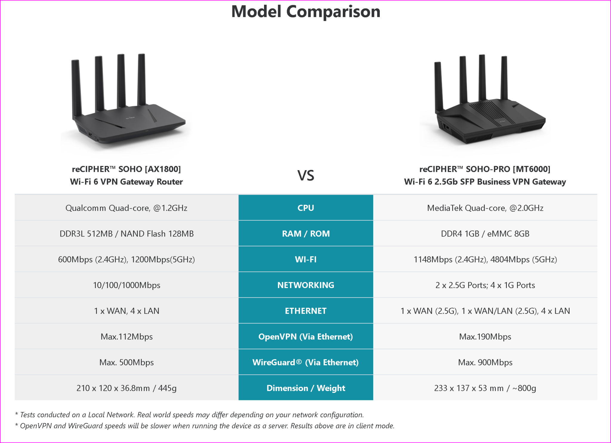 Using a reCIPHER™ Gateway is the fastest and easiest way of automatically protecting all devices connected with both DNS & VPN encryption, to name only two of the many features. reCIPHER™ Gateways range from the reCIPHER™ SOHO [v1 WiFi 6 1GB Ethernet], to reCIPHER™ SOHO-PRO and reCIPHER™ HOMERUN KIT, both with 2.5Gb Ethernet and USB3, and reCIPHER™ NOMAD-5G-PRO. All units come with our optional reCIPHER™ Firmware & Software, as well as our optional Cloud Management & Provisioning system.